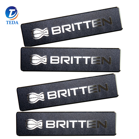 特注ブランド名ロゴデボス加工ブラシ付きアルマイトプレートサイン屋外用金属ラベルタグ車用